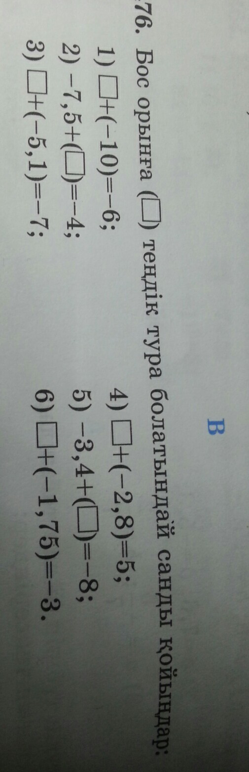 1) 4+(-10)=-6 2)-7,5+(3,5)=4 3)-1,9+(-5,1)=-7 4)7,8+(-2,8)=5 5)-3,4+(-4,6)=-8 6)-1,25-(-1,75)=-3