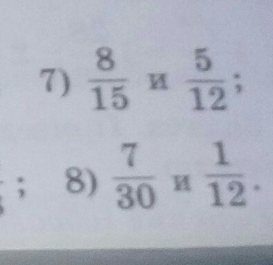 8) 7/30 и 1/12=84/360 и 30/360.
