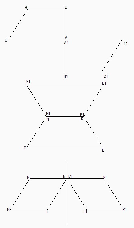 3) Изобразите паралл. MNKL и постройте фигуру симм. нему относ. прямой проходящей через K(перевёрнутая т)NK.