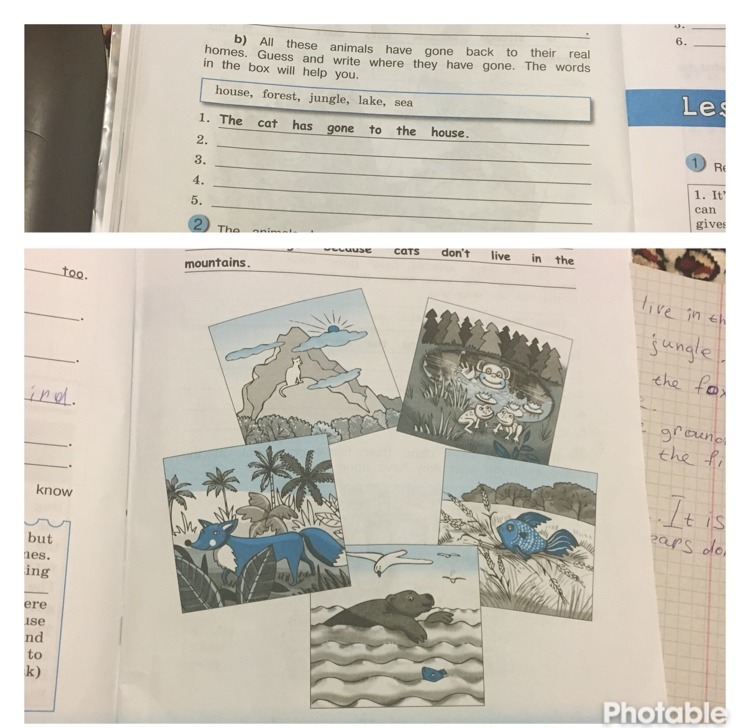 All these animals have gone back to their real homes. Guess and write where they have gone. The words in the box will help you.
