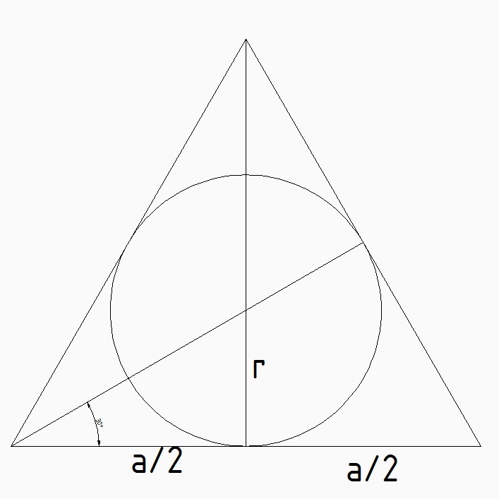 Радиус вписанной окружности равностороннего треугольника (см рисунок) относится к половине основания пирамиды как tg(30)