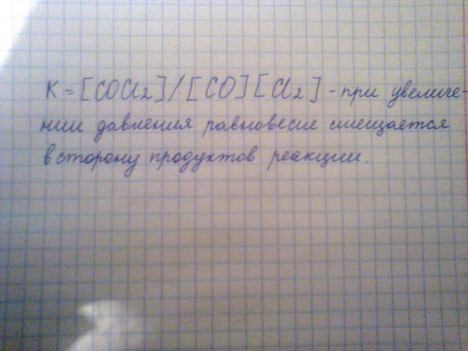 Напишите выражение константы равновесия для реакции :Cl2(г)+CO(г)=COCl2(г).в каком направлении-смещается химическое равновесие в этой системе при повышении давления?