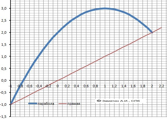 S(F,G) = G(x)dx - F(x)dx = (-x²+2x+2)dx - x*dx = -1/3*x³ +1/2*x²+2x