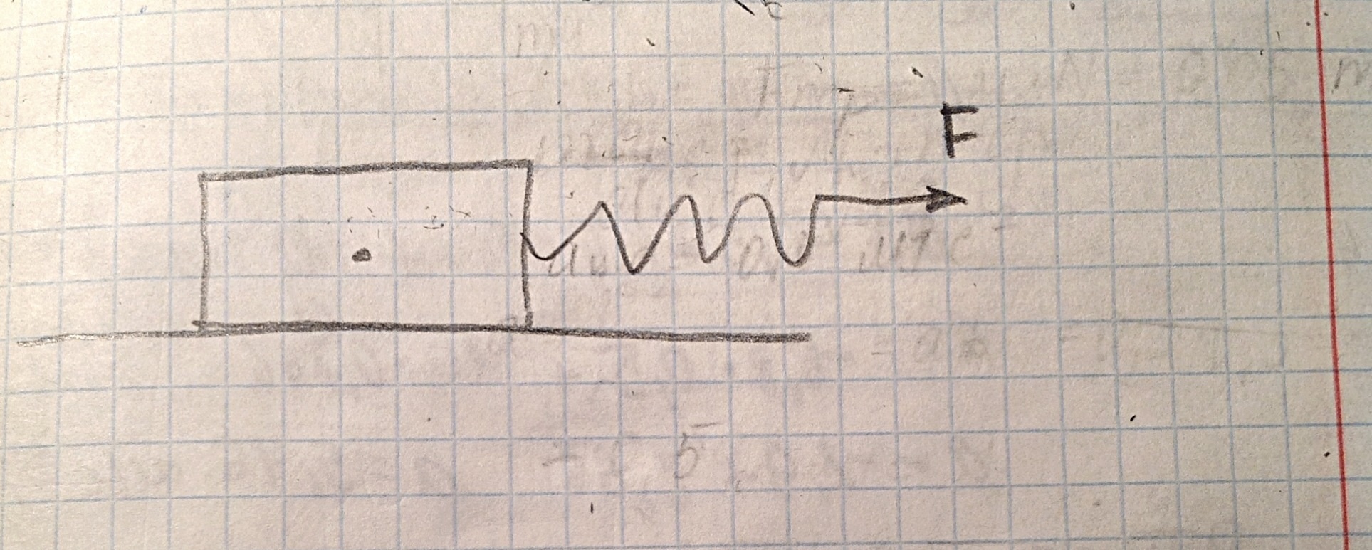 Нарисуйте, пожалуйста, как действуют, куда приложены силы трения и силы упругости на данном рисунке.