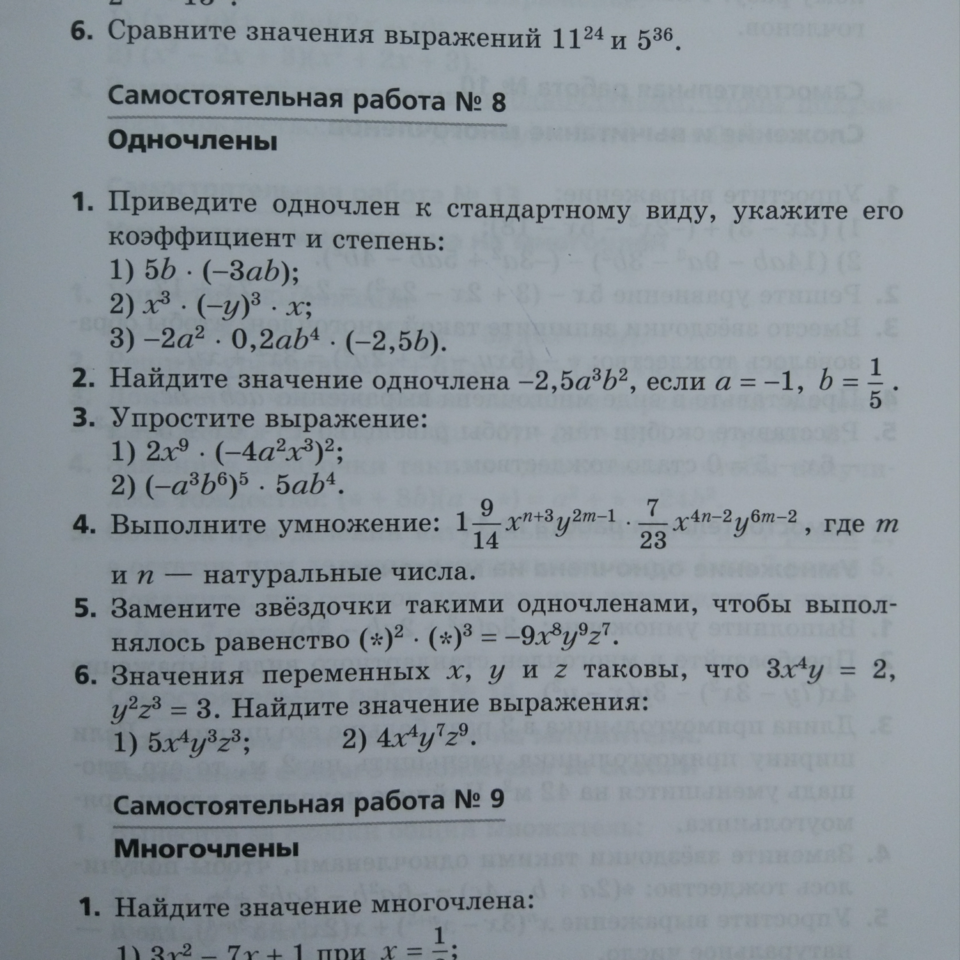 2) = 0.1; 3) = 8a^{4} x^{15}; = -5 a^{16} b^{34} ;