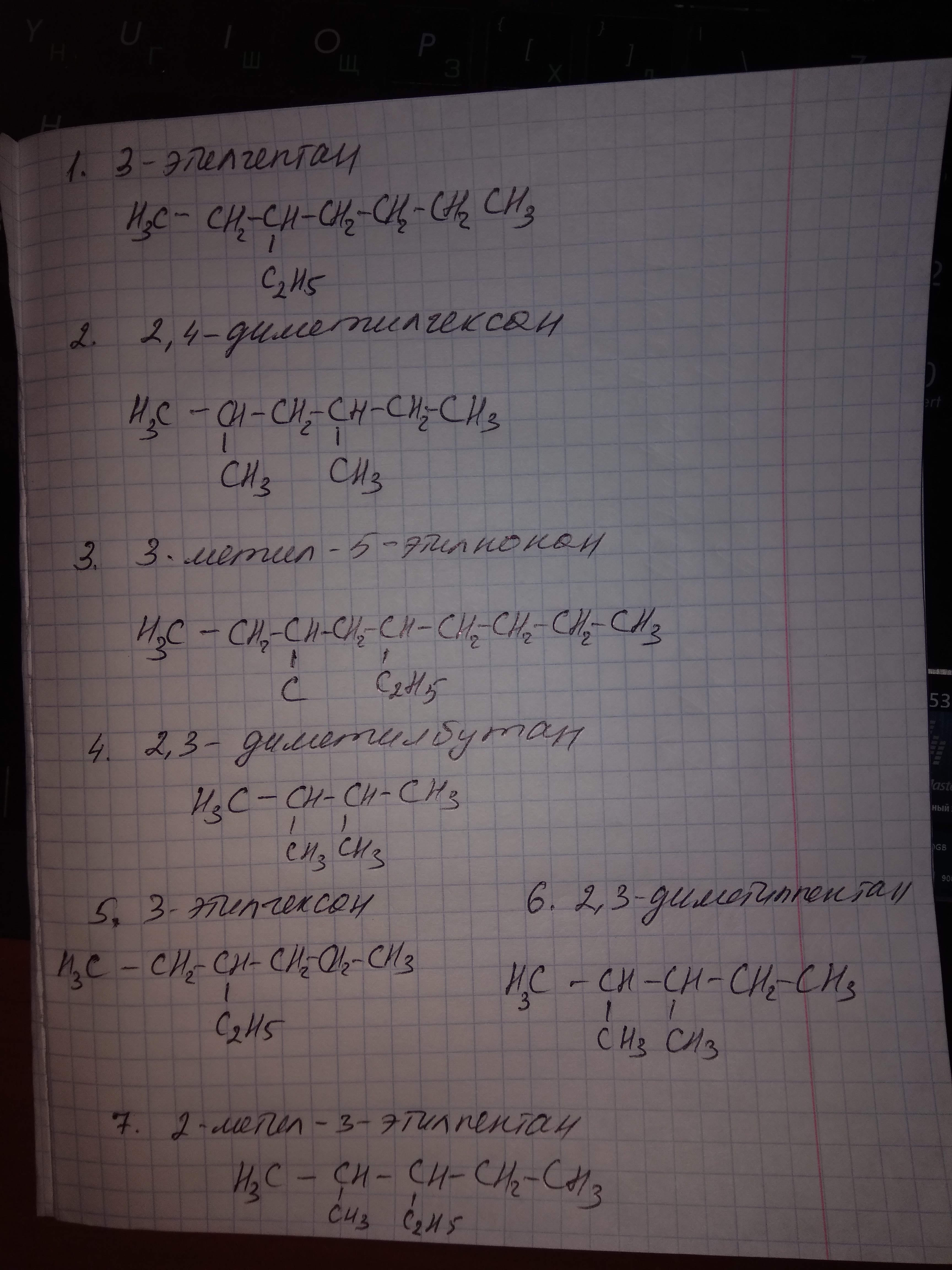 7. CH3-CH(CH3)-CH(C2H5)-CH2-CH3