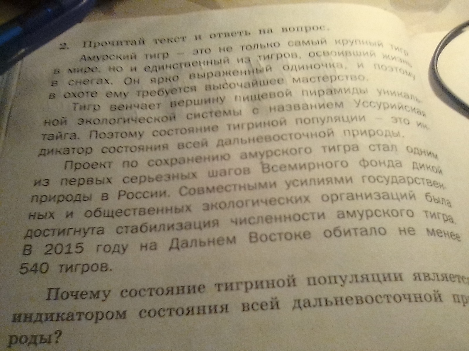 Задание: почему состояние тигриной популяции является индикатором состояния всей Дальневосточный природы?
