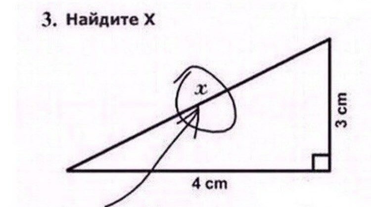 х = Корень из (4²+3²)= Корень из 25 = 5 см