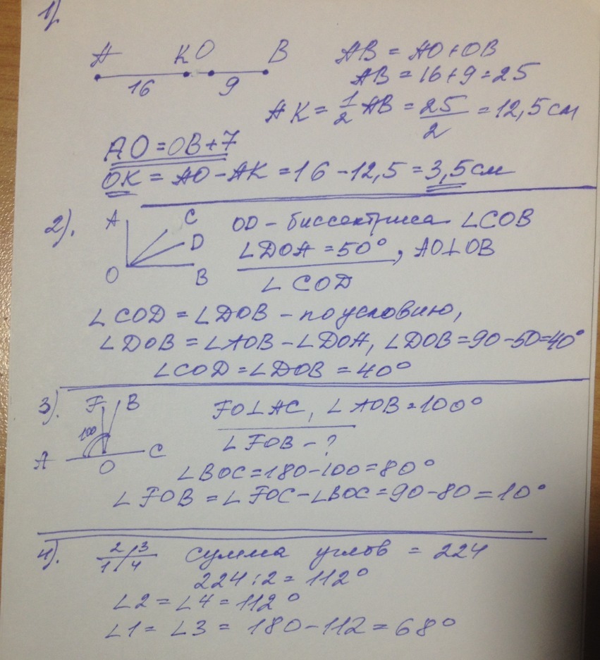 1)Точка O отмечена на отрезке AB . Длина AO равна 16 см, а длина OB равна 9 см. Сравните отрезки AO и OB и запишите ответ. Вычислите расстояние от середины отрезка AB до точки O .