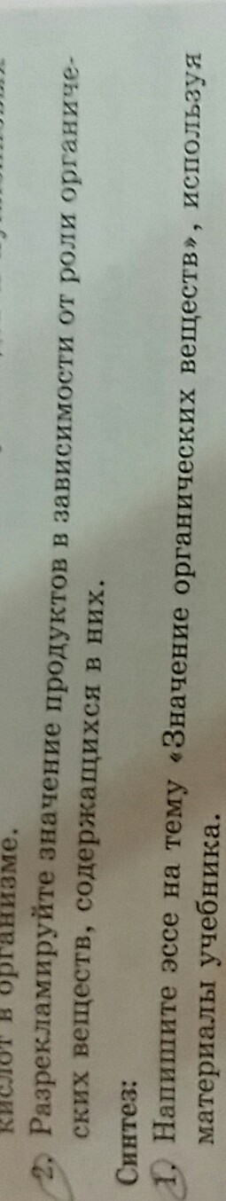 1)Продукты являются топливом организма , в них можно получить жиры, белки , углеводы. Основным источником энергии являются углеводы, они мгновенно расщепляются и дают много энергии. Если этой энергии не достаточно, организм продолжает переваривать пищу, добывая энергию из липидов, то есть жиров.Клетки непрерывно делятся и растут, им постоянно нужны жиры. При отсутствии жиров замедляется рост и деление клеток, организм не омолаживается, быстрее стареет, замедляются или прекращаются регенеративные процессы. Белки являются строительным материалом для организма