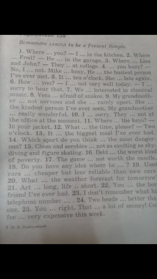 тебе надо вставить am is are c l употребляется am с is употребляются he she it а с are we you they у тебя там первое предложение с where это множественное число поэтому пишется are YOU ЗАМЕТЬ ЧТО YOU УПОТРЕБЛЯИТСЯ С WE YOU WHEY