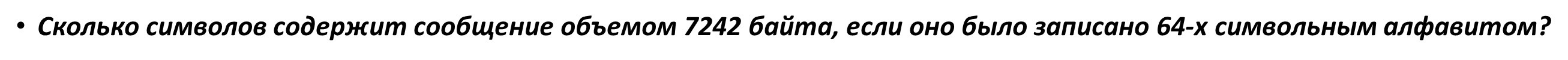 Сколько символов содержит сообщение объемом 7242 байта, если оно было записано 64-х символьным алфавитом?
