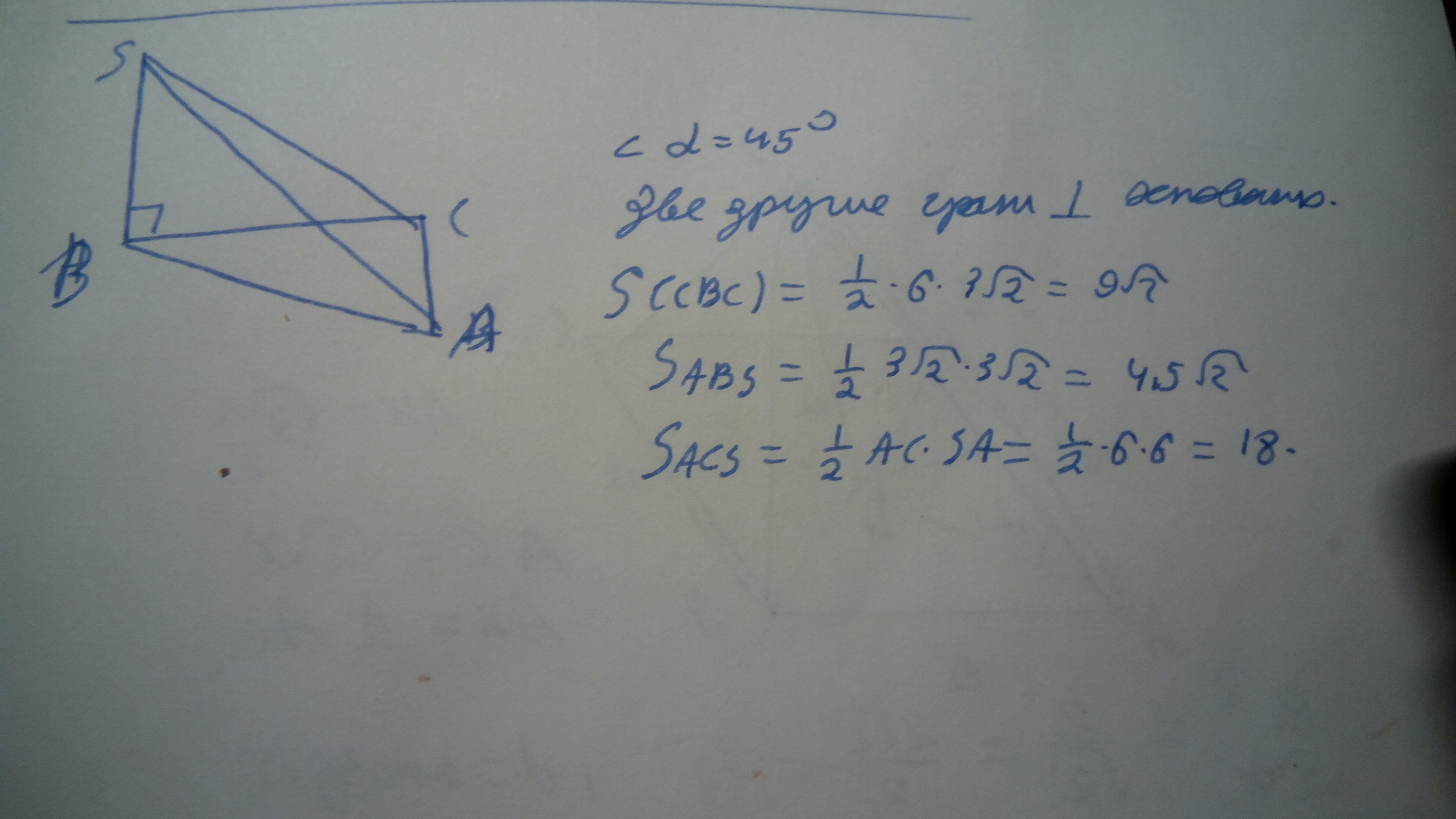 Угол между SAC и пл основания 45.