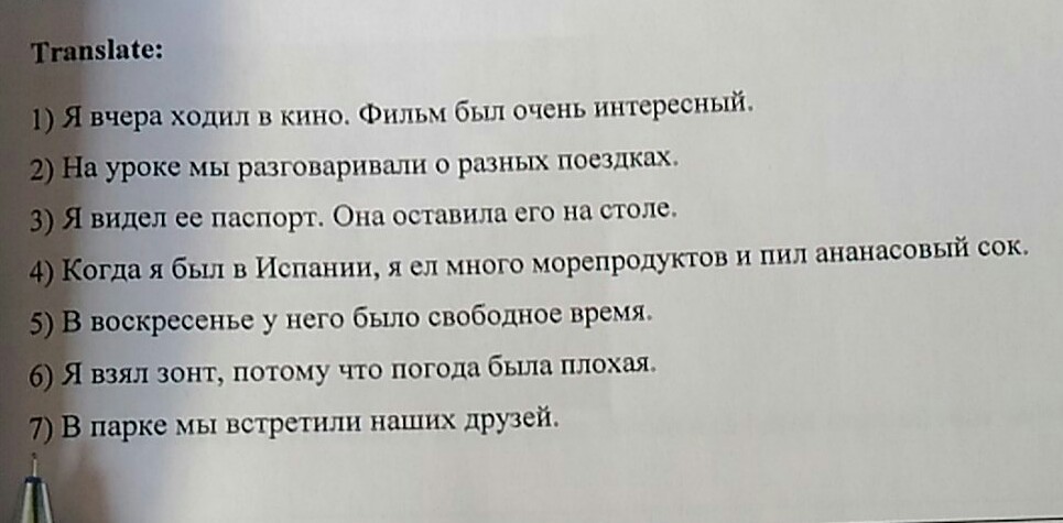 4) When I was in Spain, I ate a lot of seafood and drank pineapple juice