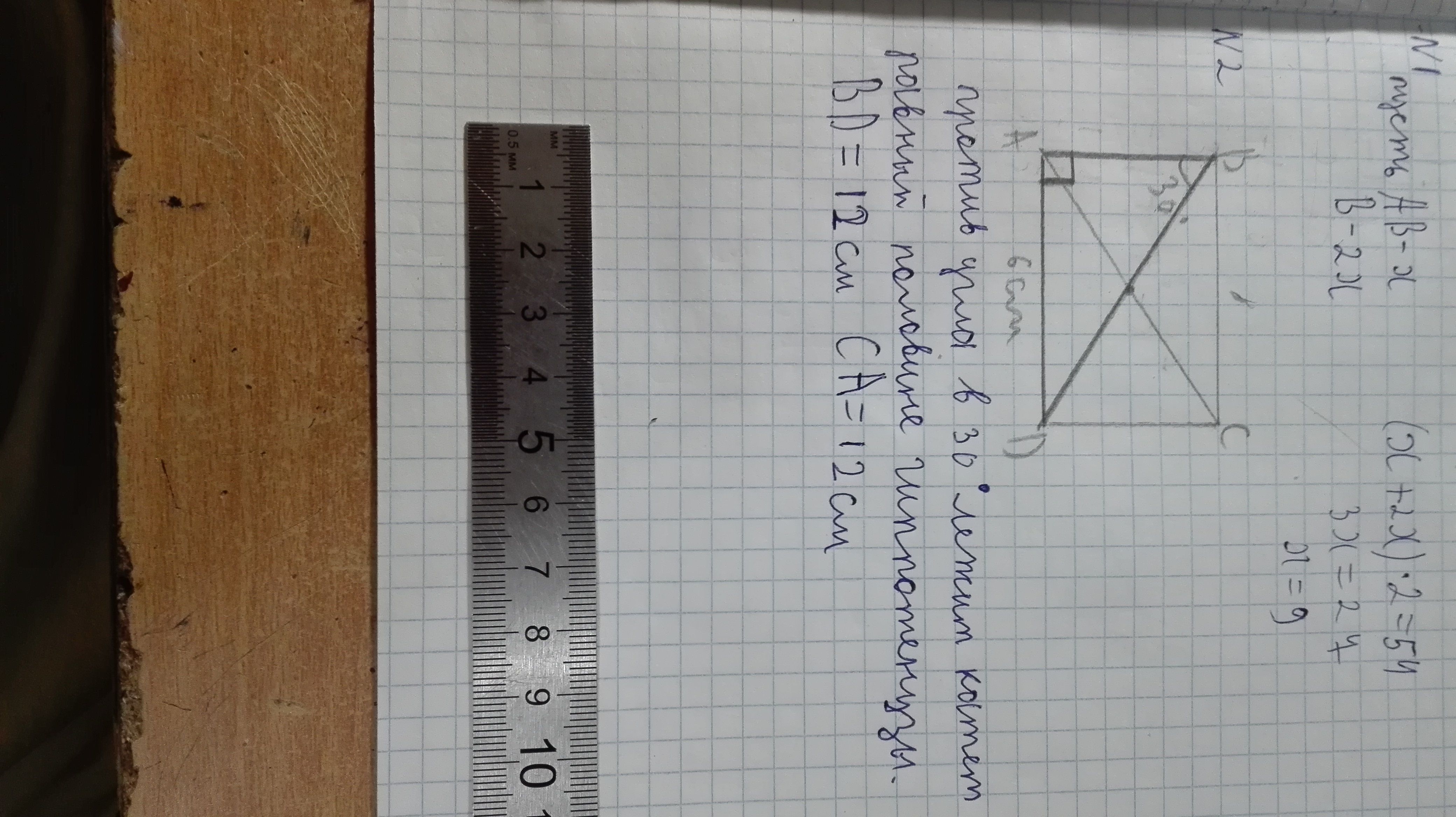 х=6 см (стороны АД и ВС)