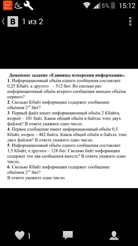 1-в 4 раза 4, тк 0,25 кб=2048 бит, значит 2048512=4
