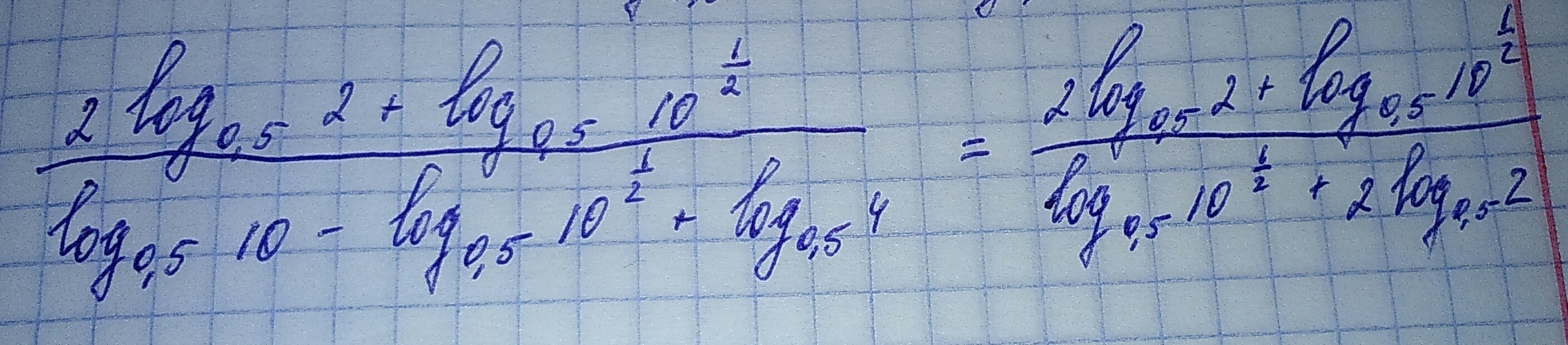 (2log0,5(2)+log0,5(√10)) / (log0,5(10)-log0,5(√10)+log0,5(4))