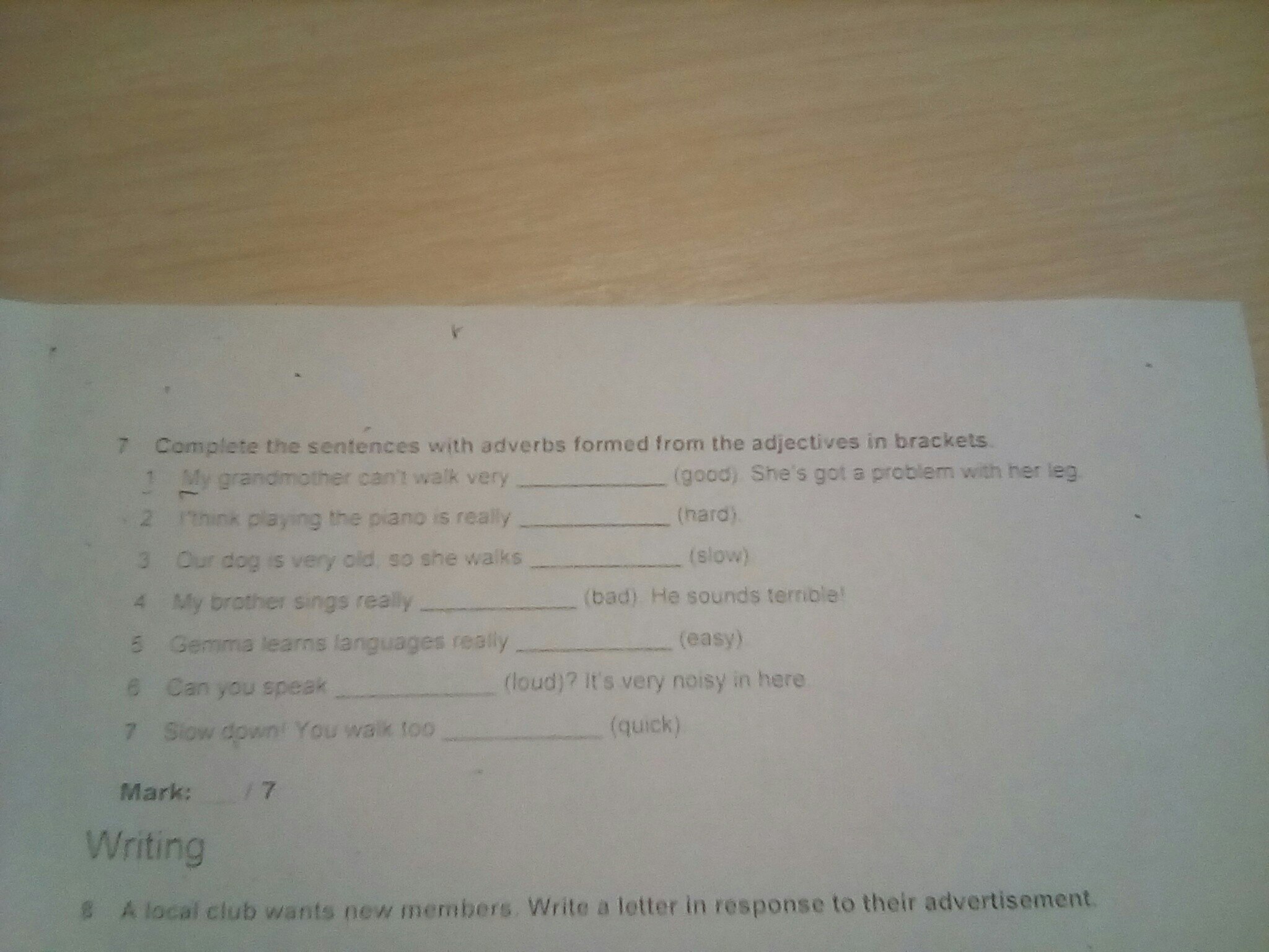 Не так разве? - 2. hardly, 6. loudly, 4. badly