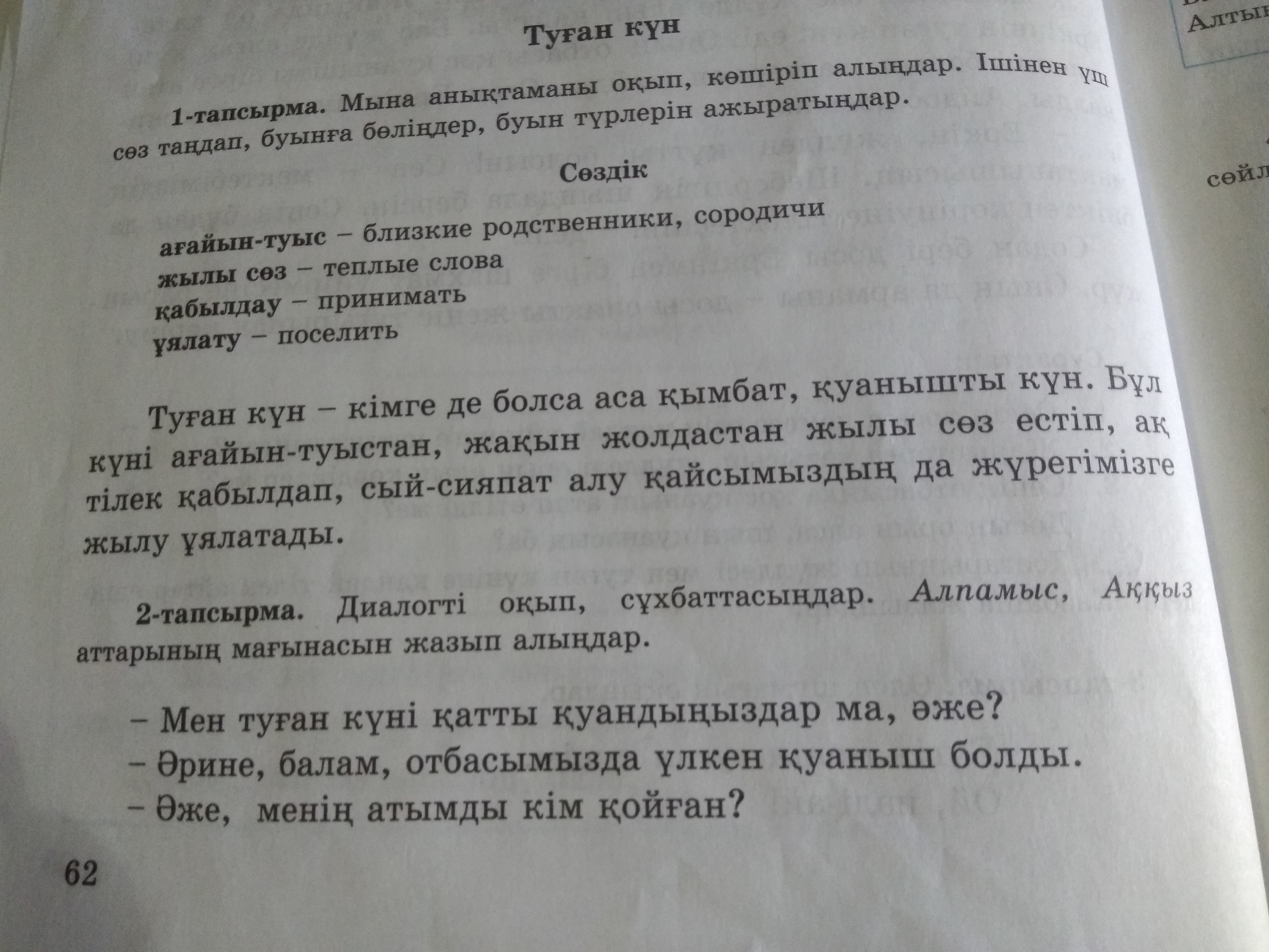 Переведите текст! Прошу 1 тапсырма и наподобие его составьте текст что такое день рождения?!