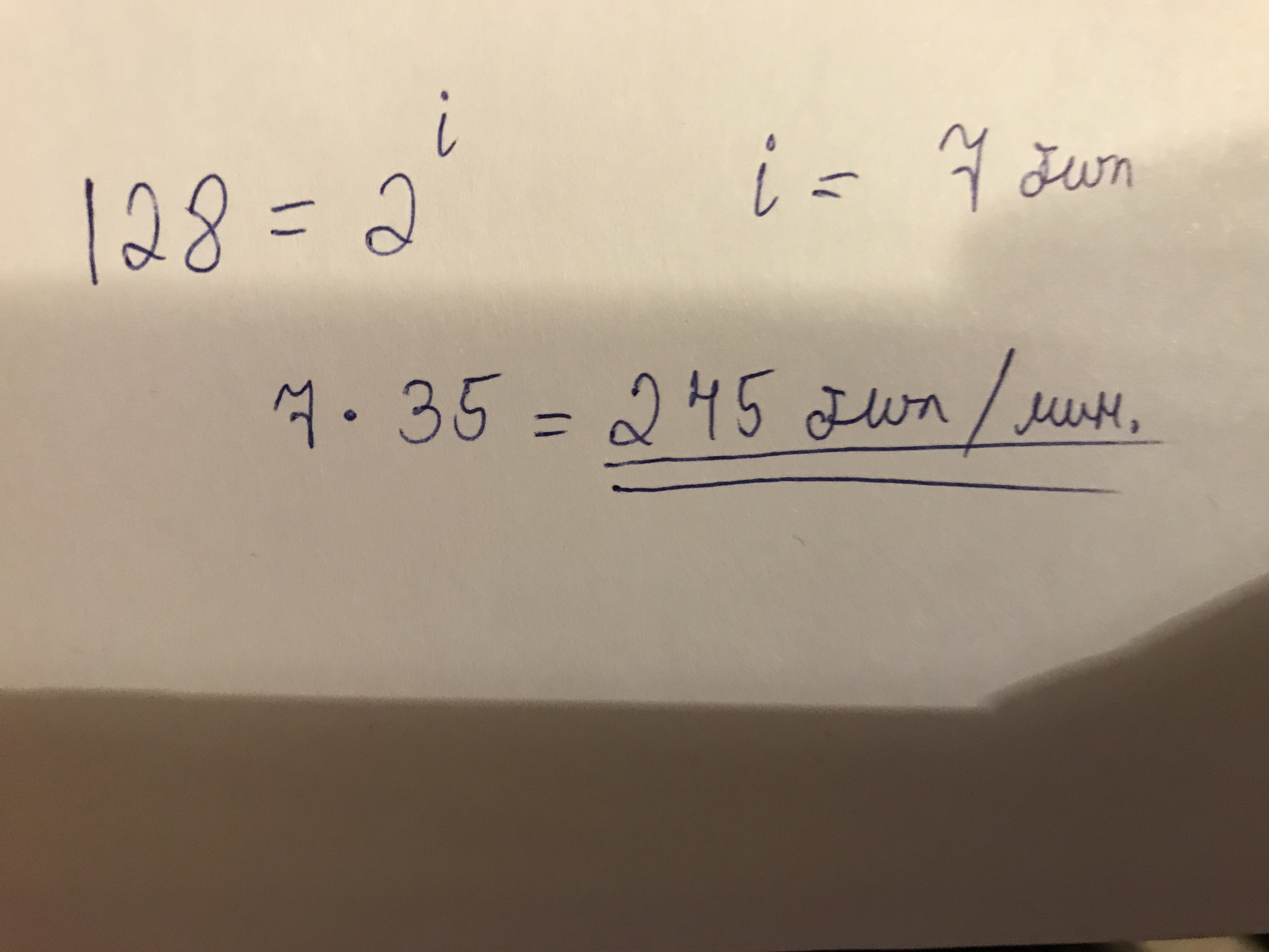 Информационное сообщение передается со скоростью 35 символов в минуту. Алфавит передаваемого сообщения состоит из 128 символов. Какова скорость информационного потока.
