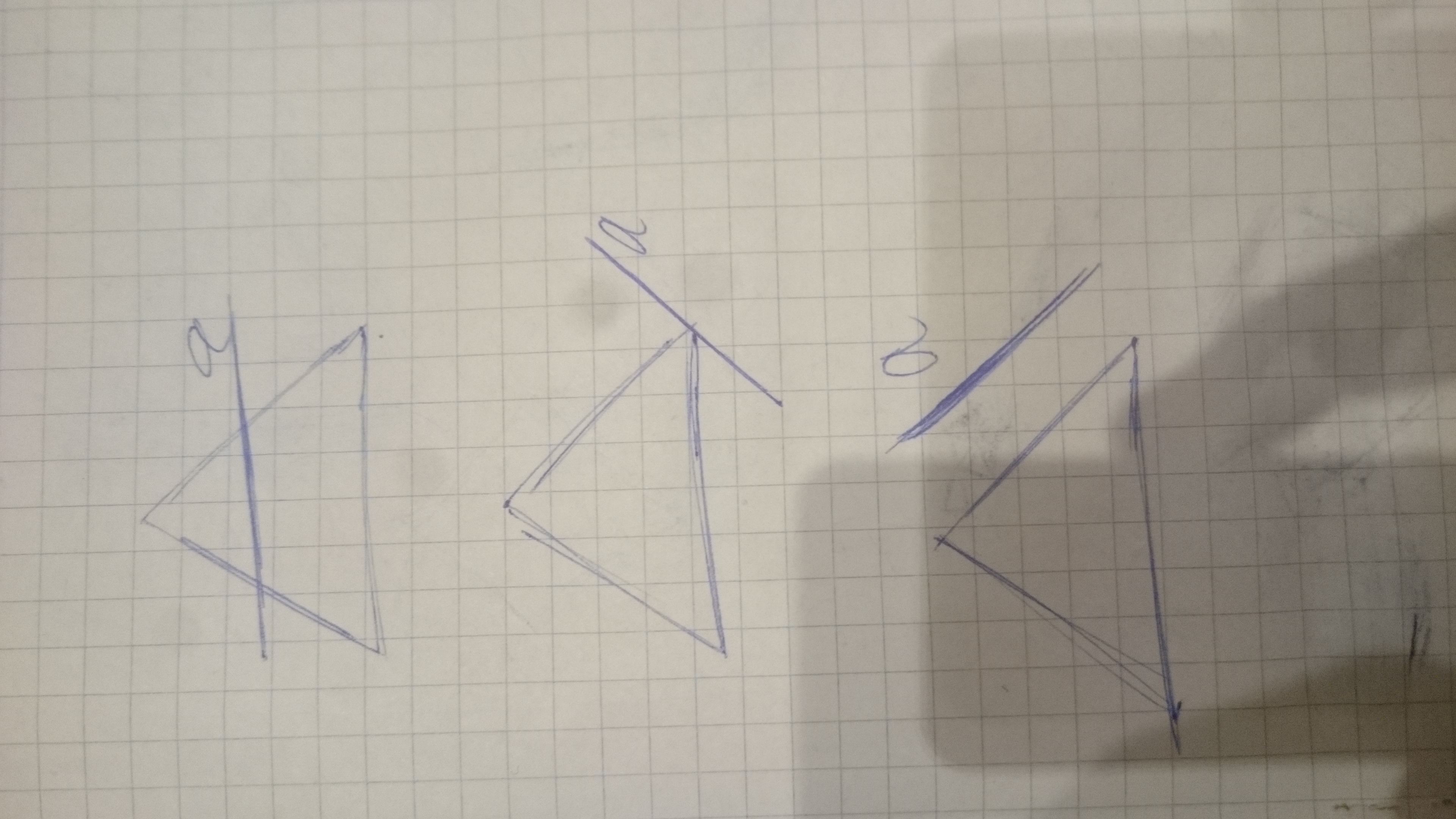 Нужно начертить треугольник. Построить прямую линию так, чтобы она: