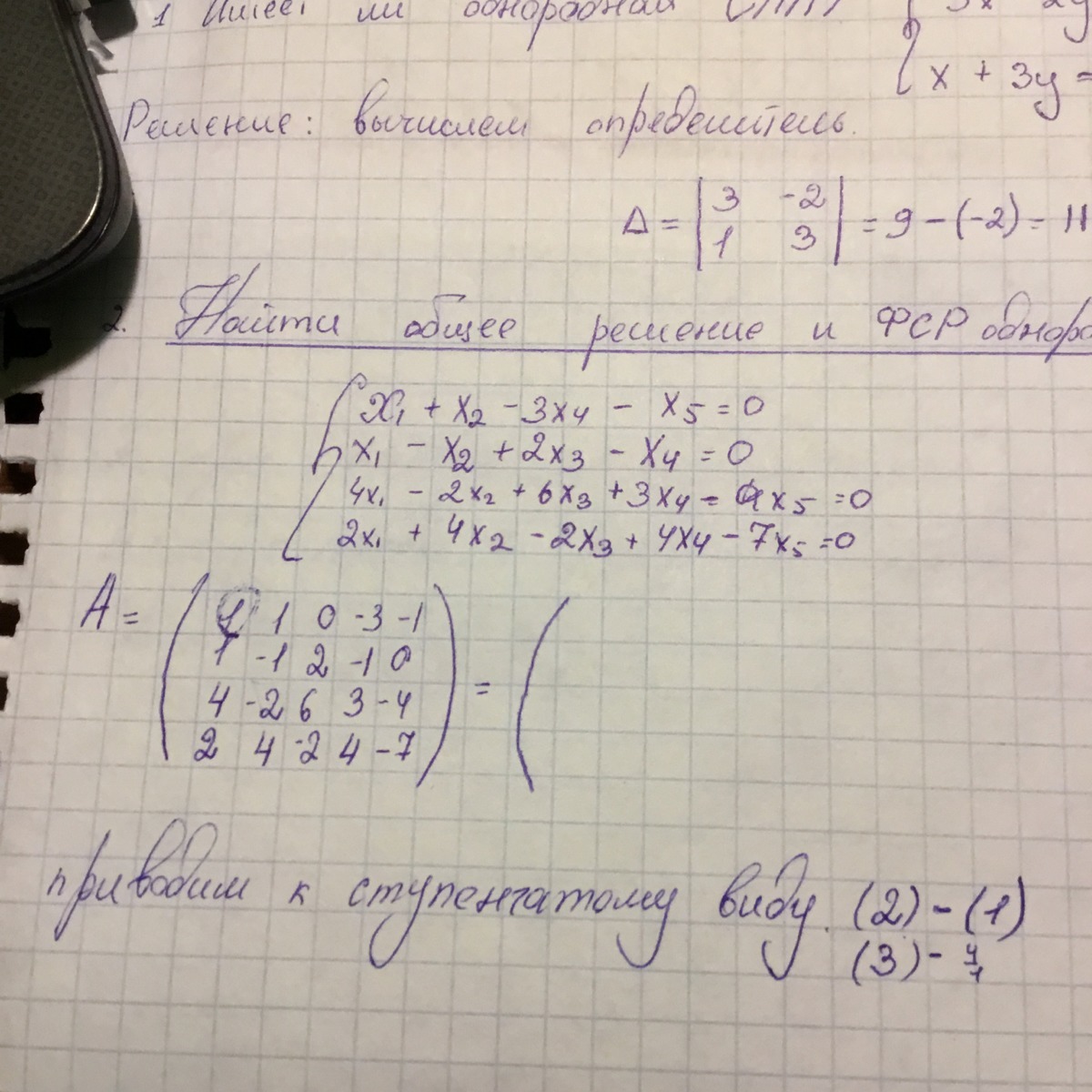 далее приводим к ступенчатому виду(например методом Гаусса)