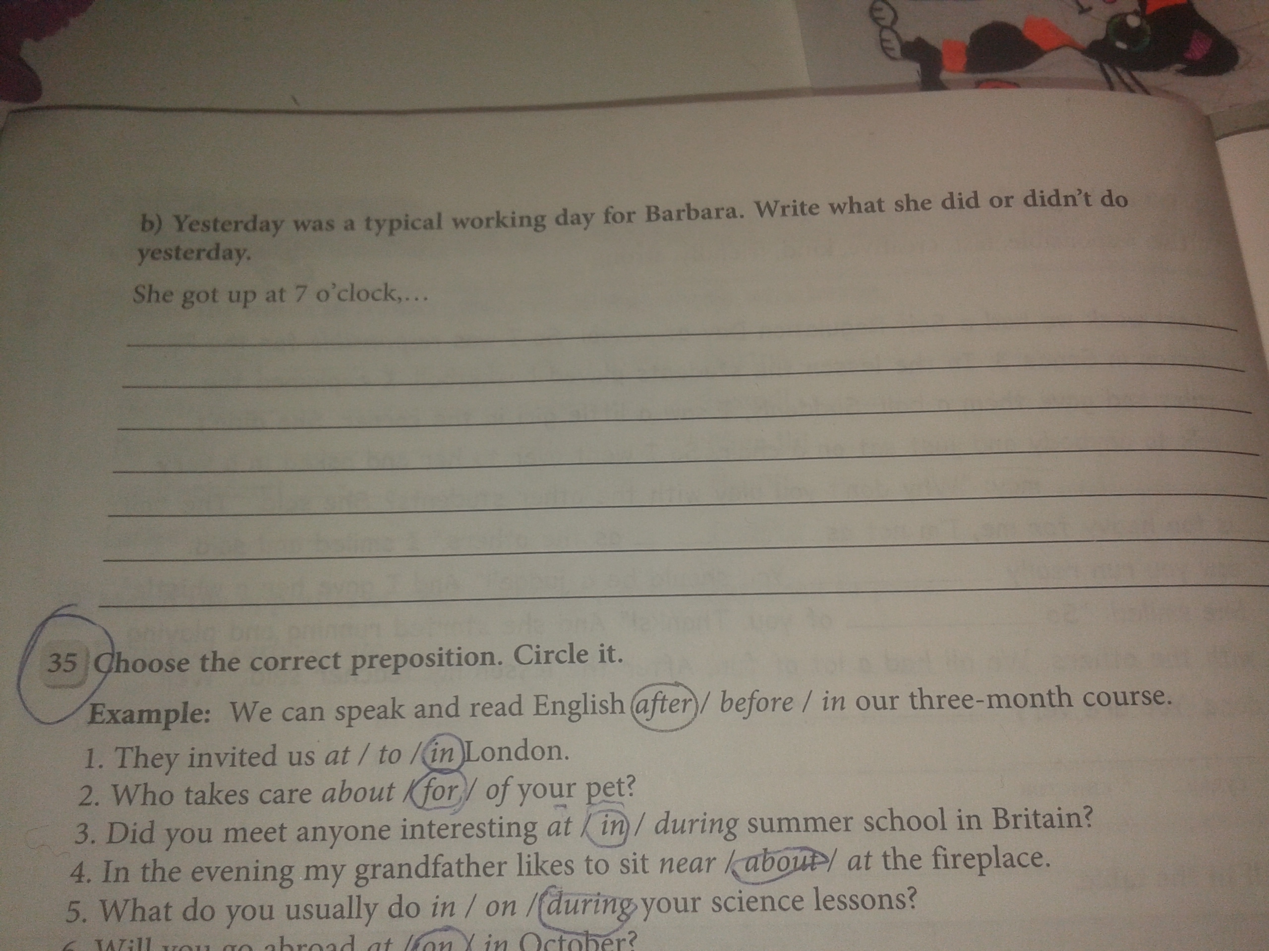 She put on clothsed at eight o"clock.
