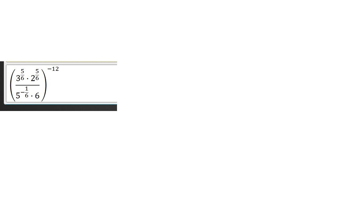 = ( ((3•2)^(5/6))^(-12) ) / (((5^(-1/6))^(-12))•6^(-12)) =