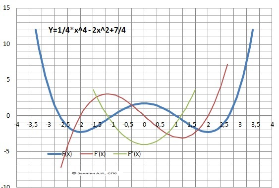 6. Производная функции.Y'(x)= x³- 4х = х*(х-2)(х+2).