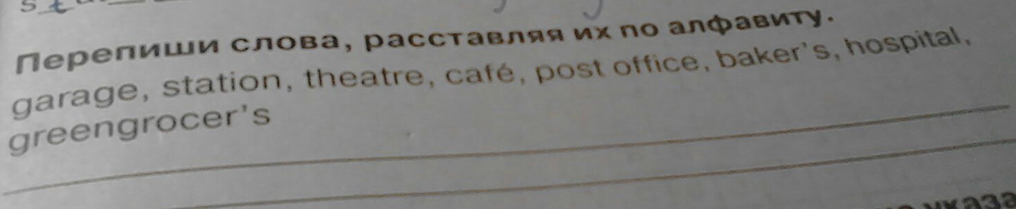 baker's, cafe, garage, greengrocer's, hospital, post office, theatre, station