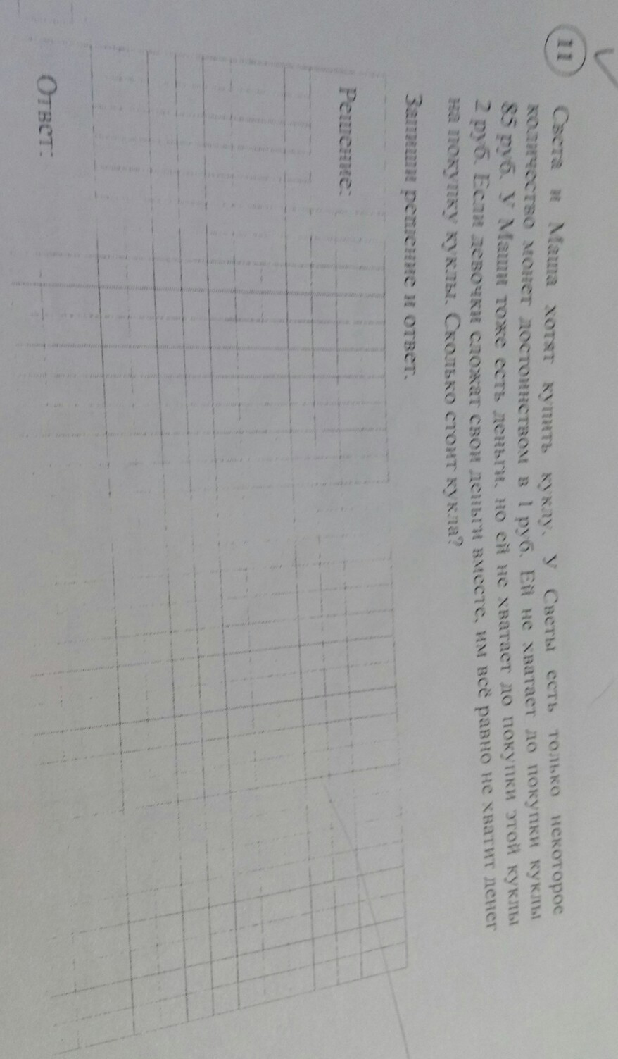 не хватит денег 86руб. это стоимость куклы у Маши 84 рубля а у Светы 1 рубль 84+1=85 Ответ денег не хватит на покупку куклы
