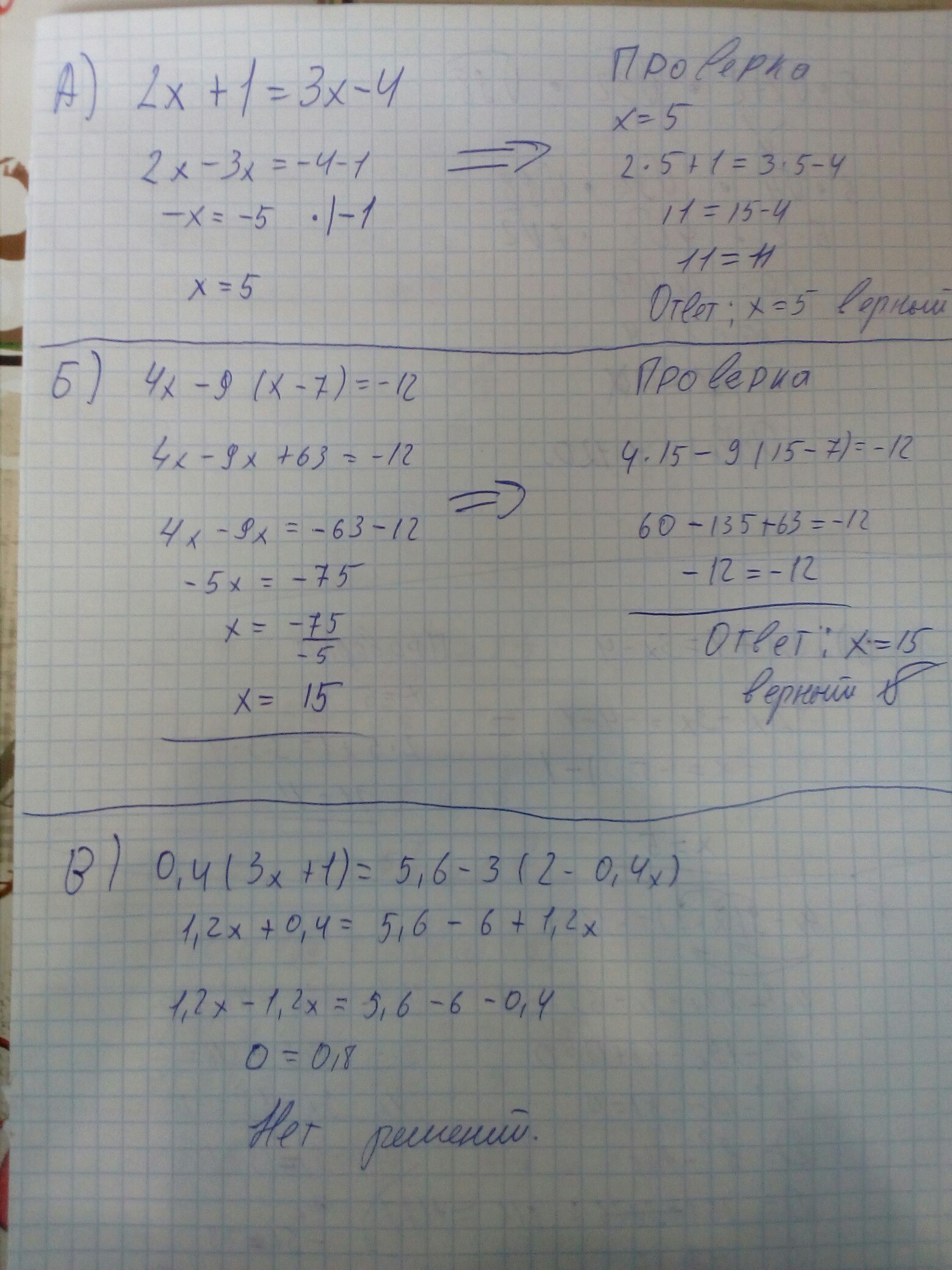 уровнение "а" неверный х=5 а не -5 так как если подставить х на исходное уровнение они не будут ровняться