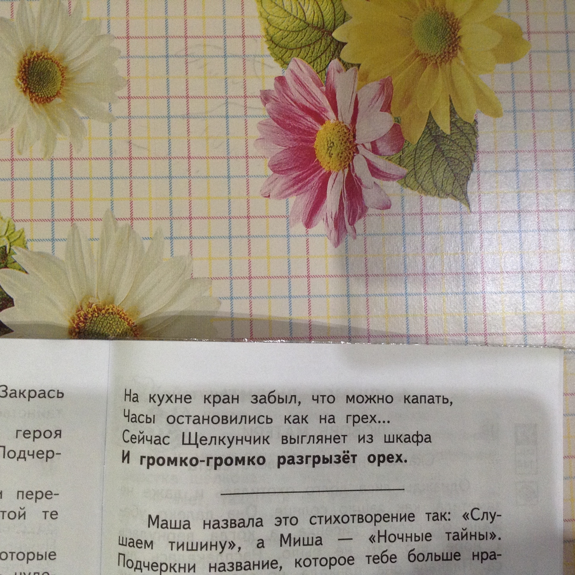 Маша назвала это стихотворение так :<<Слушаем тишину >>,а Маша -<<Ночные тайны >> подчеркни название ,которое тебе больше нравится .