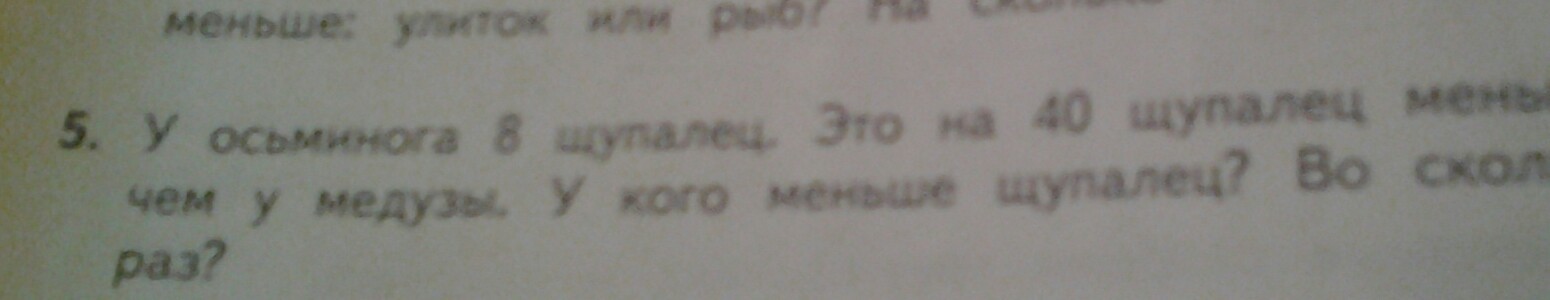 осьминога 8 щупалец это на 40 щупалец меньше чем у медузы у кого меньше щупалец Во сколько раз