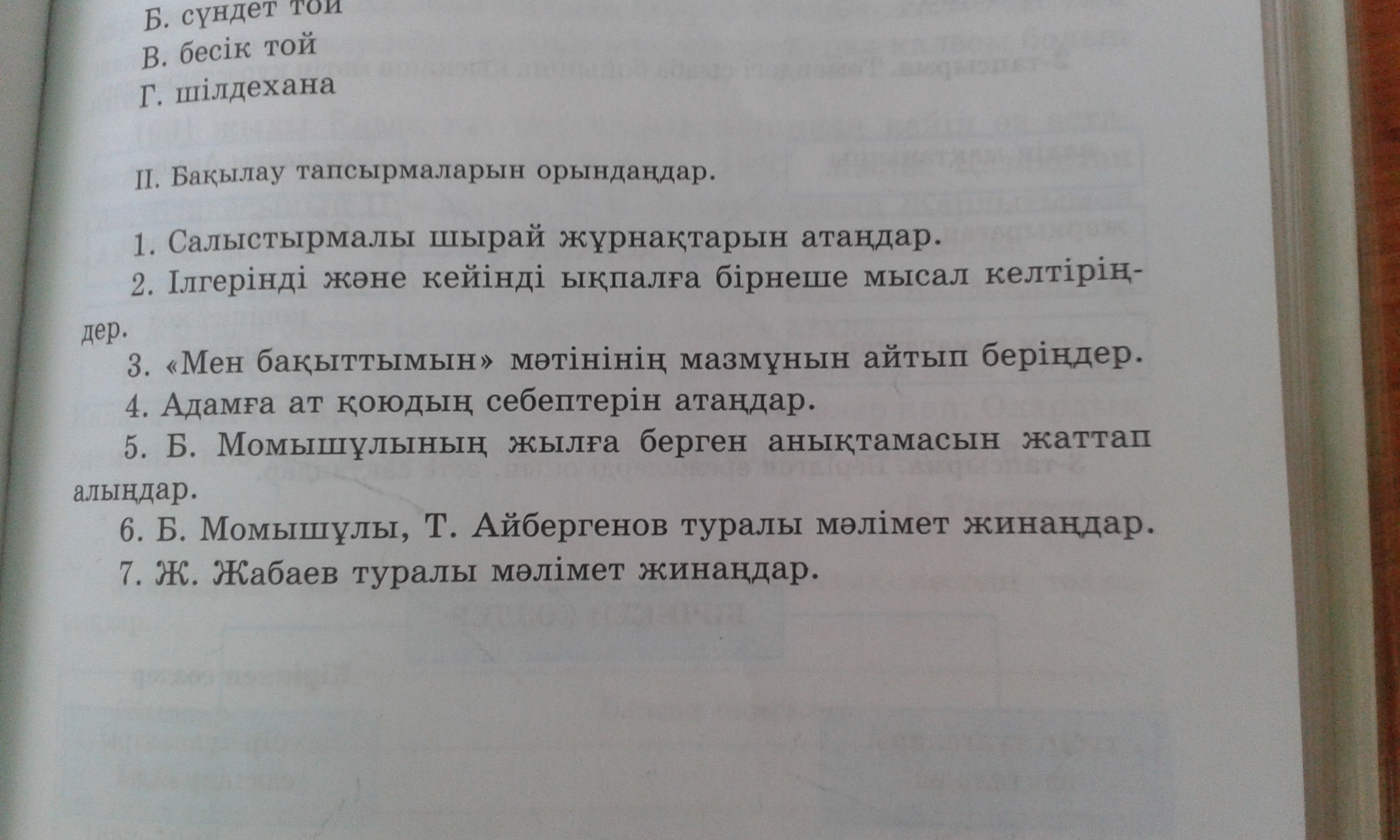2)Ілгерінді ықпал: Тілеуқабыл - Тілеуғабыл, Сарықұм - Сарығұм, көкбай-көкпай, Жеңісбек - Жеңіспек, Болатбек - Болатпек.