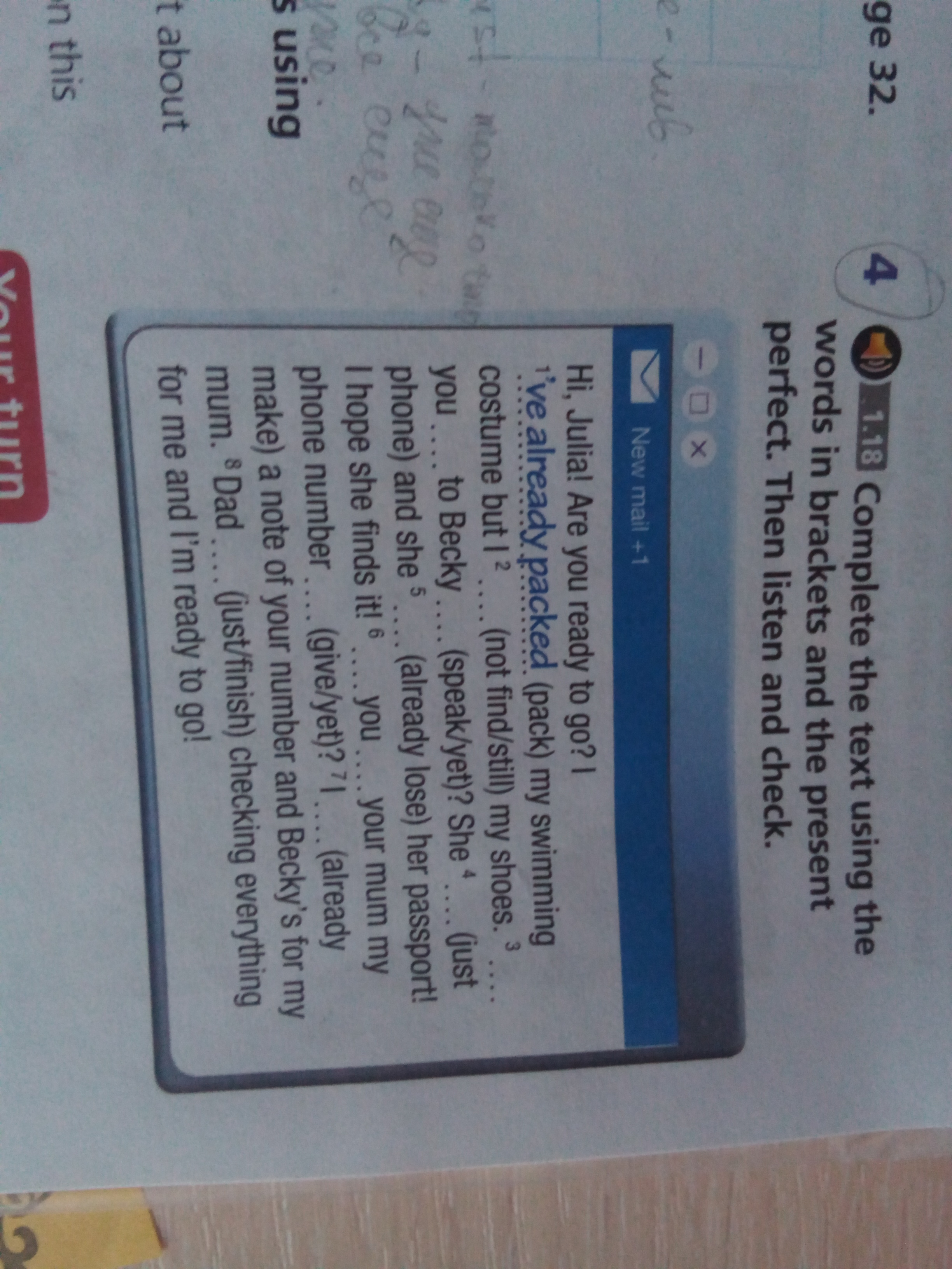 4 She has just phoned.....