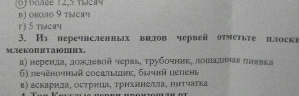 из перечисленных видов червей отметьте плоских червей паразитирующих у млекопитающих
