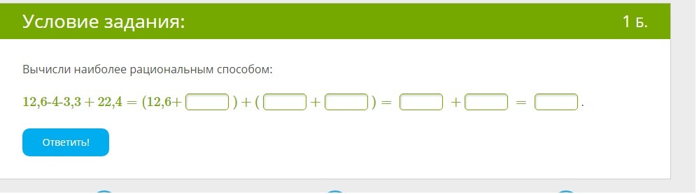 12,6-4-3,3+22,4= (12,6+22,4)+(-4+(-3,3))= 35+(-7,3)= 27,7