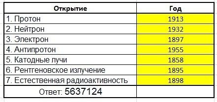 № 80 Первая половина 20 века ознаменовалась созданием серии моделей строения атома предшествовало и сопутствовало экспериментальное открытие различных частиц и излучений. В какой исторической последовательности происходили указанные ниже открытия? Ответ запишите в клеточки в виде последовательности цифр.