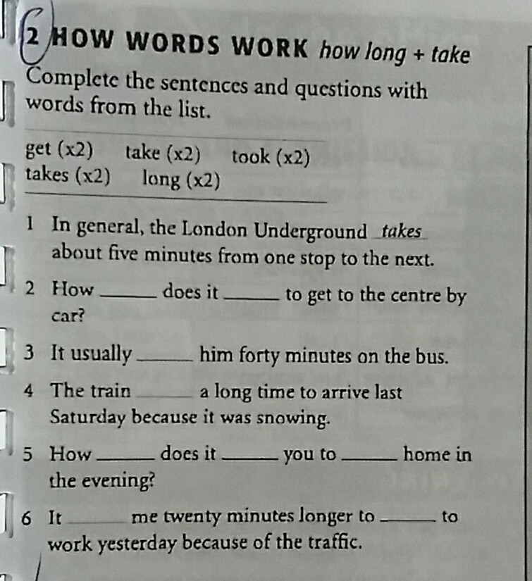 6 It took me twenty minutes longer to get to work yesterday because of the traffic.