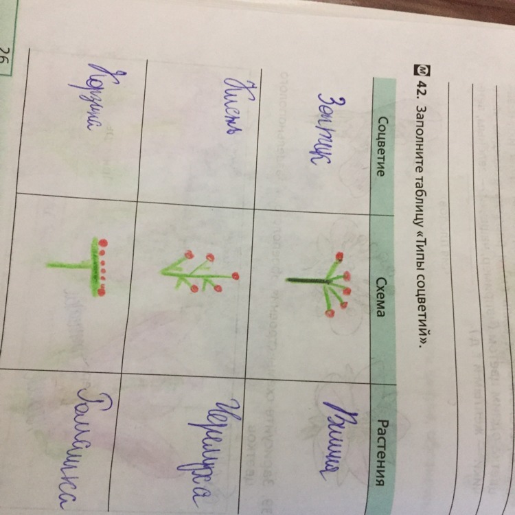 Вот)Таблица на странице 26 ,,Типы соцветий"