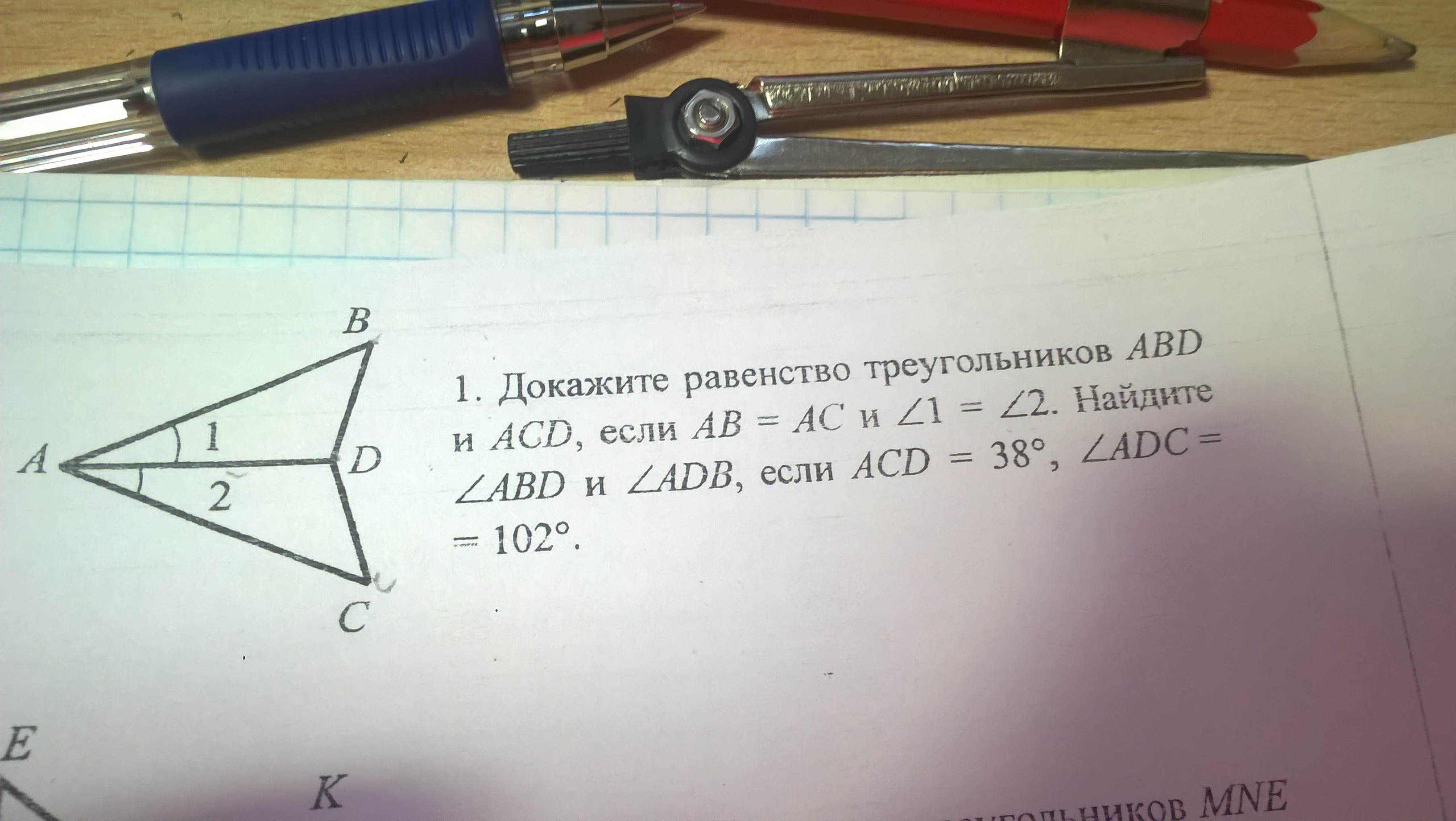Угол 1 равен углу 2(по условию)