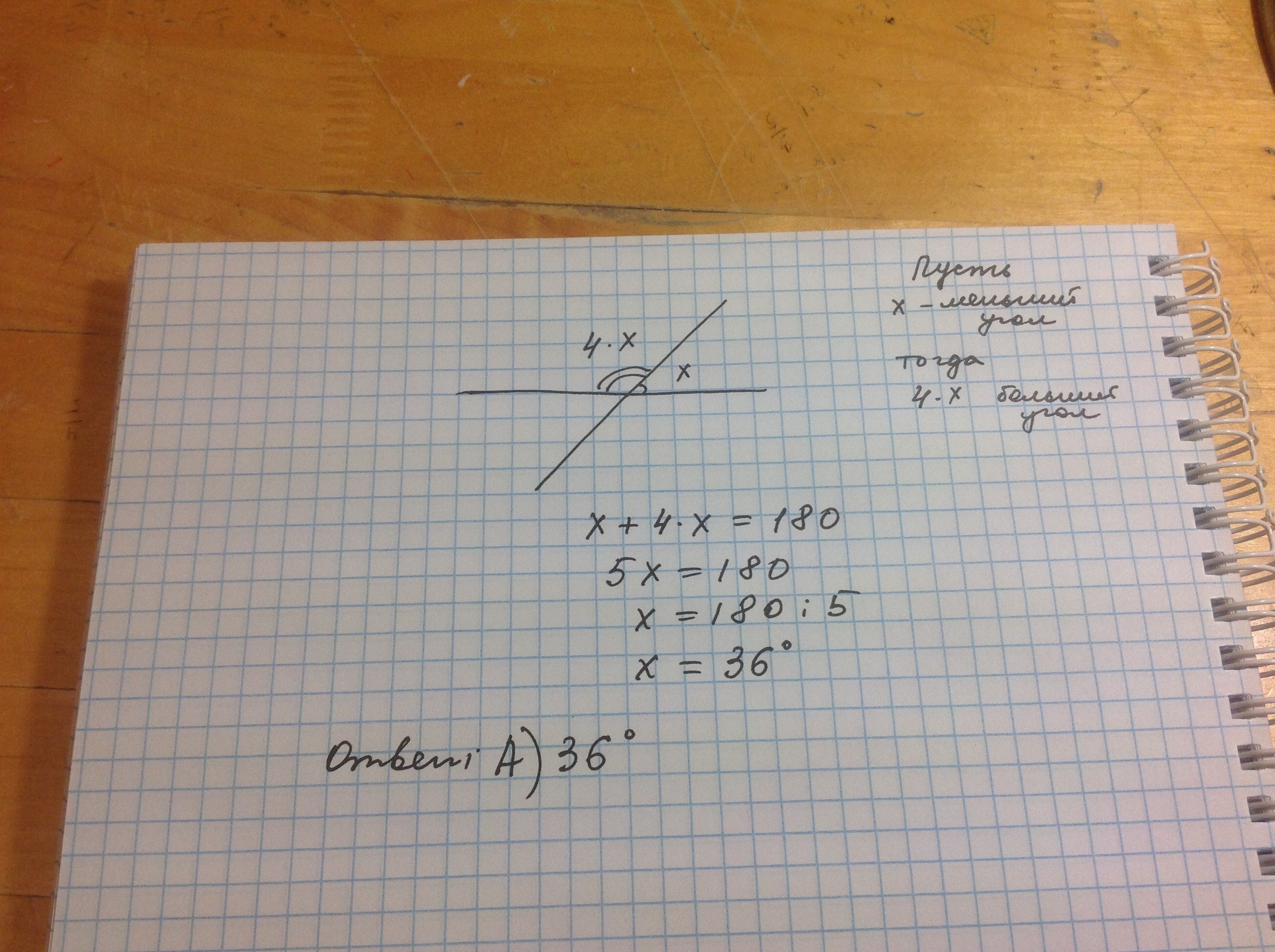 Чему равны меньшие вертикальные углы при пересечении двух прямых, если больший из них в 4 раза больше второго?