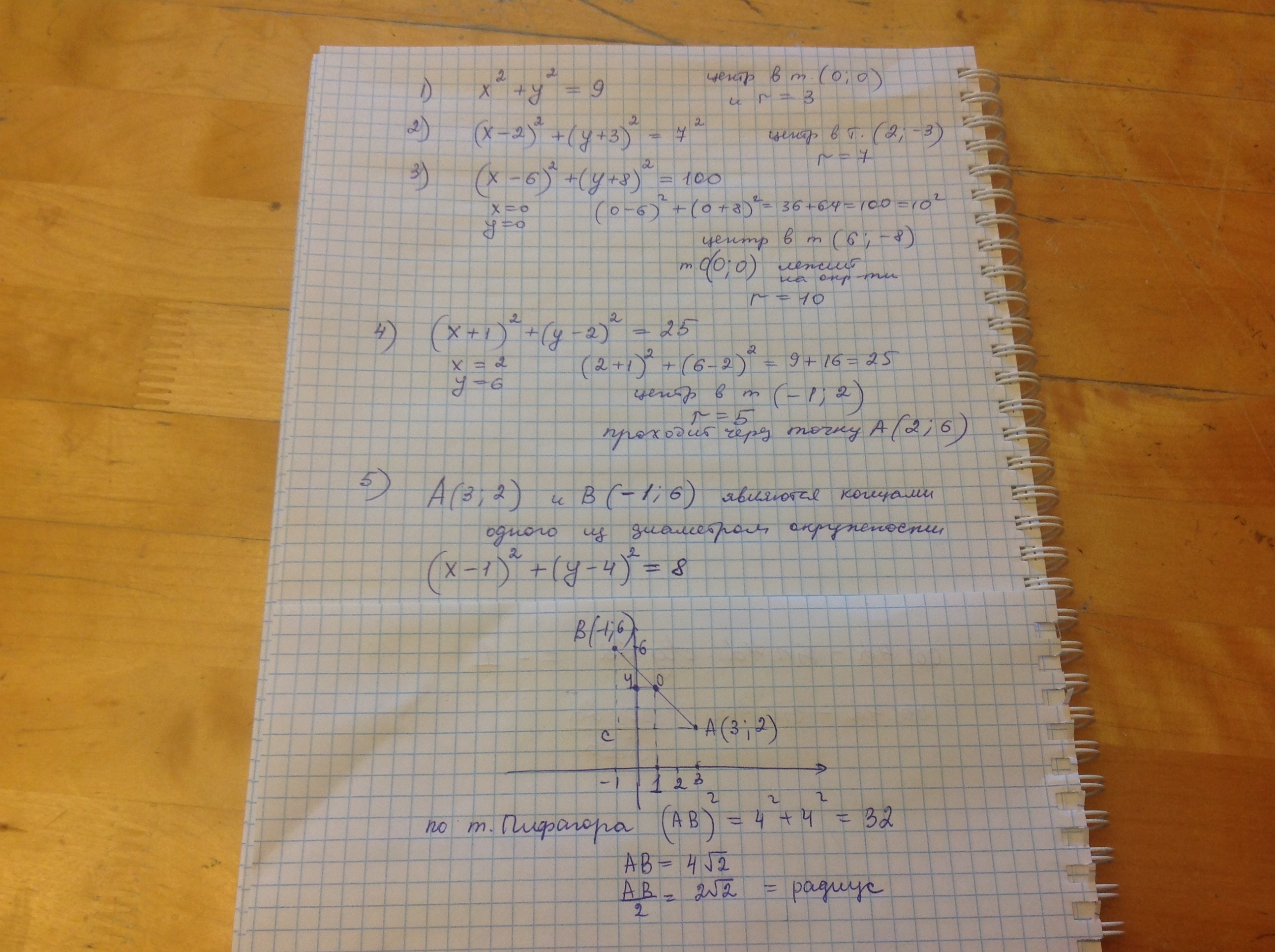 5) точки A(3; 2) и В(- 1; 6) являются концами од-ного из диаметров окружности;