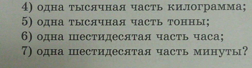 4)1 /1000кг. 1/1000т. 6)1/60час. 7)1/60мин.