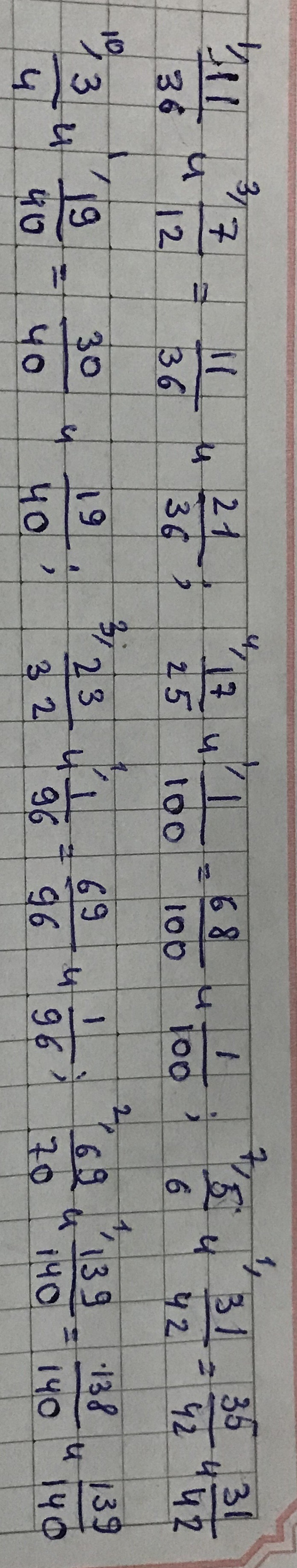 Приведите к наименьшему общему знаменателю обыкновенной дроби 11 36 и 7 12 )17 25 и 1 100 )3 4 и 19 40 )23 32 и 1 96 )5 6 и 31 42 )69 70 и 139 140 )