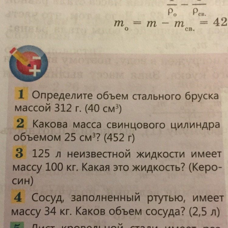 1) v=p/m масса=312гр плотность стали =7.8гр/см^3