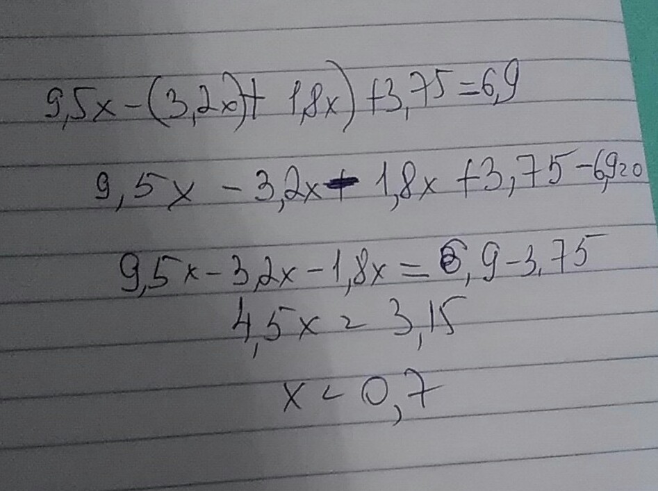 9,5x-(3,2x+1,8x)+3,75=6,9