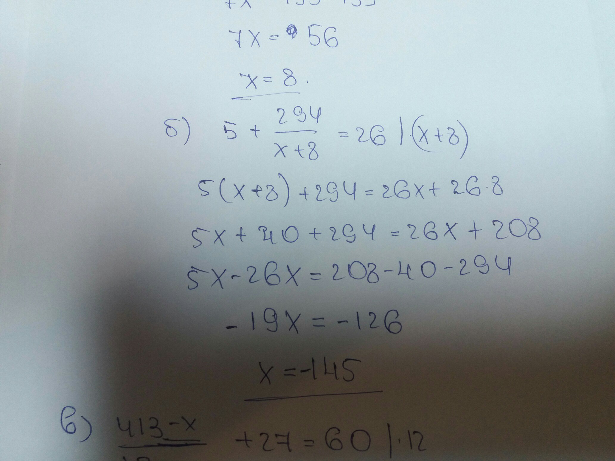 Б)5 + 294 дробь х+8=26