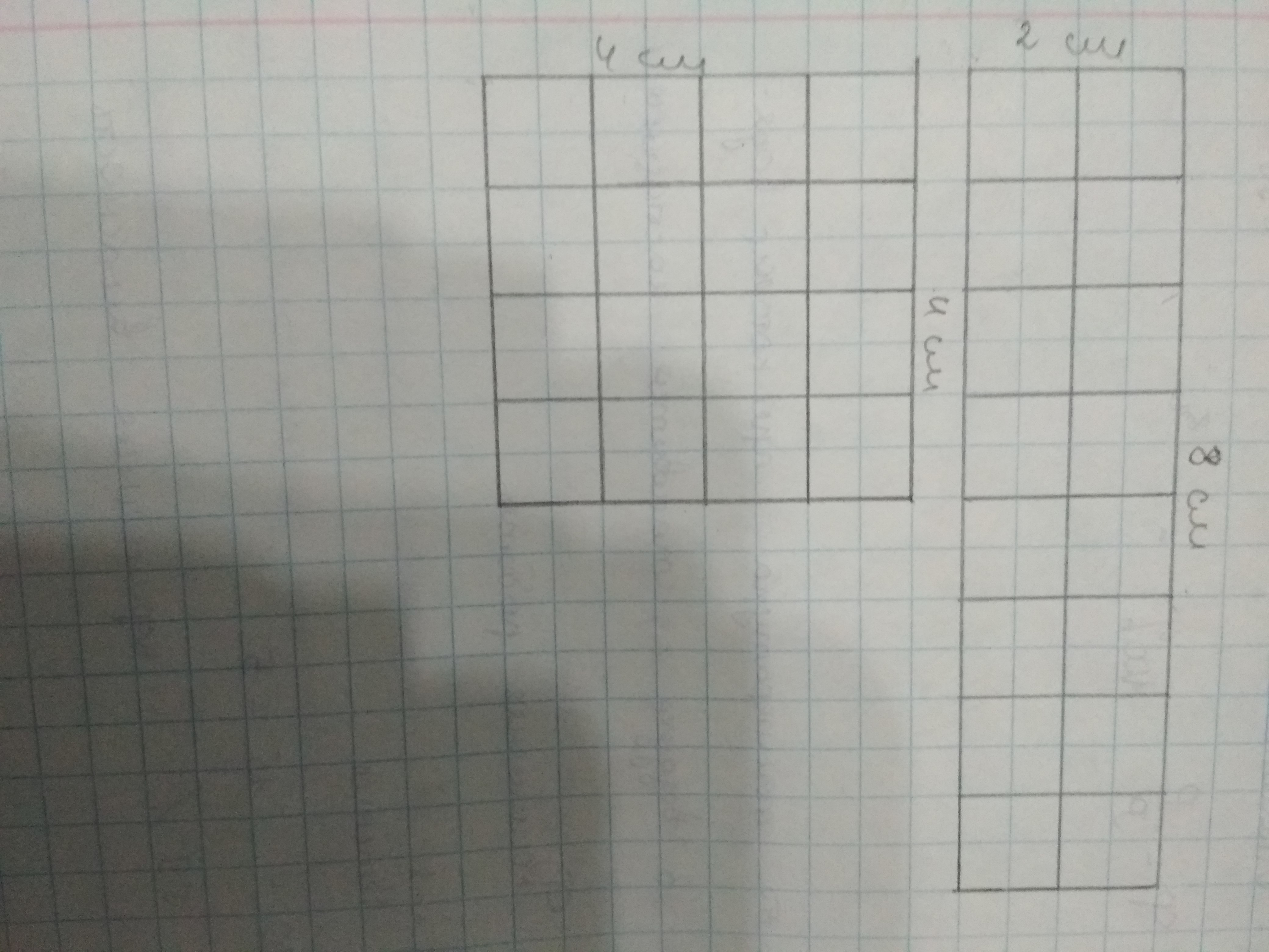 У прямоугольная стороны 8 см и 2 см, а у квадрата стороны 4см